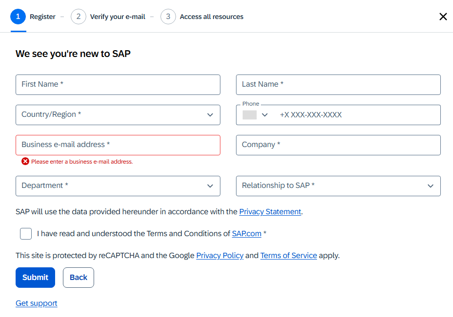 SAP BTP trial注册地址:点击进入以下信息如实填写即可,注意86手机号也可能验证,必须要验证手机号,不然容易风控!注册验证成功后可以选择 Cloud Foundry的区域:可以选择美国或者新加坡。进入试用账号后台:享受90天免费的使用时间,可自动延时。理论上可长期使用,请看官方说明:试用账户和免费层 | SAP Help Portal试用账户...